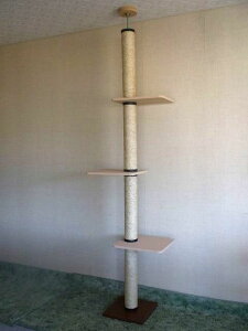 壁やカーテンを登っちゃう元気な子にオススメ!木登り大好きなネコちゃんのための長いのぼり棒タワー!つっぱり式で組立簡単。柱は爪が引っかかりやすい麻縄製。抱きつきやすい太さになっています!