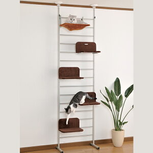 突っ張りタイプの木登りキャットタワーです。スリム設計なのでお部屋の隅やちょっとしたスペースでも設置可能。天井の高さに合わせて簡単にタワーの高さを調整できます。コンパクトな土台は3cmの厚みでしっかり支柱を支えます...