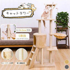 【商品内容】:キャットタワー【カラー】:ベージュ/ダークグレー【サイズ】:(約)49*35*135CM【ベースサイズ】:(約)49cm×35cm【柱サイズ】:直径(約)5.4cm【重量】:(約)8.6...