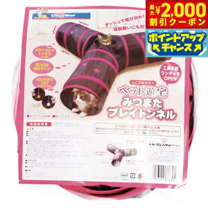 ダッシュで飛び込め!ビヨヨ〜ンと広がるプレイトンネル。複数飼いにもおすすめです。3つのトンネルに4つの出入り口。トンネルの入り口には趣向の違った仕掛けを用意。入り口2ヶ所はカラコロ音が鳴るボールと、鈴入りボールのぶらさが
