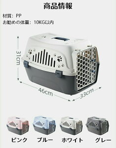 ペットの出し入れをスムーズに行え、ペットのストレスを軽減します。 2 サイズ展開で小型犬、猫、小動物の体格に合わせて選べ、大きめサイズモデルはペットに十分な活動スペースを提供し、長時間収容しても快適性を保ちます。 取っ手が付属して持ち...