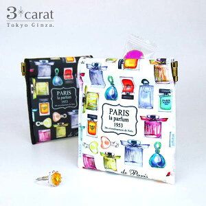こちらは一番人気のデザイン。エレガントな香水瓶柄です。 内側にもワンポイントの模様が入っています。 キャンディポーチはアクセサリーやイヤホン、鍵や常備薬まで、ちょっとした小物をカンタンに収納できるバネポーチ