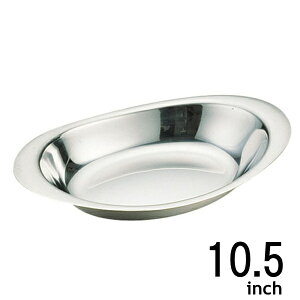 レストランやカレー専門店で愛用されるカレー皿です。最近は昭和レトロブームで、一般ご家庭でも人気上昇中♪・さびにくい高級ステンレス18-8ステンレスを使用しています。・仕上げはミラー仕上げ。 <商品仕様> ■サイズ:275×168×高