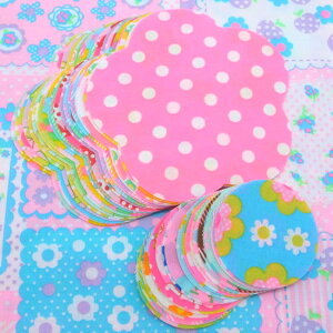 "可愛いデイジーの形にカットされた生地と花芯用のサークル生地の各100枚セットです。 お花と花芯をお好みの組み合わせで、アップリケとしてお使いいただけます。 生地ピースは縫い代込みのサイズですので、実寸用のカット済み型紙(中