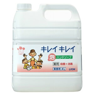 業務用 キレイキレイ 薬用 泡ハンドソープ 4L。きめ細かな泡が汚れをすみずみまでキャッチ、しっかりと落とす!殺菌成分配合!きちんと殺菌、バイ菌から手肌。