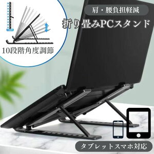 スマホホルダー付きPCスタンド 角度・高さ調整可能で疲れにくい!デスク回りをスッキリ! 【角度調整スタンド】 9段階に角度を調整できるので、長時間の作業でも首や手首の負担軽減できます! 【2つの脚を立てて高さUP!】 脚を立てるこ