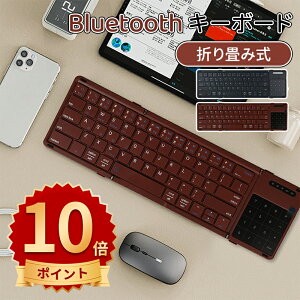 キーボード ワイヤレス 折り畳み式 ipadキーボード Bluetooth タッチパッド付き 日本語配列 有線&無線両用 左右Shiftキー/L型Enterキー搭載 フルサイズ 4台デバイス切替 Android/Win/...
