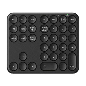 テンキー内蔵のBluetoothキーボード。キーボードの開閉で電源が自動的にオン/オフするオートパワー機能を搭載。繰り返し充電できるリチウムイオン電池を内蔵し、一度の充電で約2か月間使用可能。キーボードの角度...
