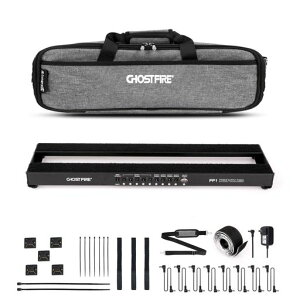 【製品仕様】GHOSTFIREPPシリーズのエフェクトペダルボードは、超軽量のアルミニウム合金(5052高硬度)を使用し、重量はわずか1.5ポンド、サイズは19.3インチx5.1インチ。9つのDC出力ポートと1つのUSB出力を備え、複...