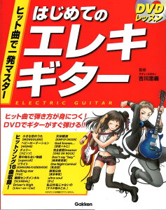 学研パブリッシングDVDレッスン ヒット曲で一発マスター はじめてのエレキギター【教則本】レッスンDVDですぐに弾ける!エレキギターの教則本。ヒット曲を題材に、 押弦、タブ譜の見方、ストローク、リフなど基本テクが楽しく身につく