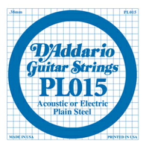 定番中の定番、ダダリオのエレキギター&アコースティックギター弦。こちらはプレーン弦のバラ弦です。Electric Guitar&Acoustic Guitar String PL-015 Single