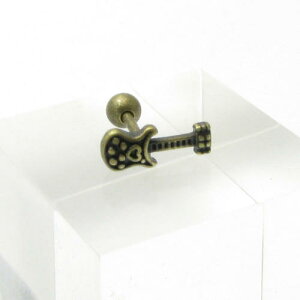 アンティークゴールドカラーのギターのモチーフ★ 装着するとさらにカッコイイです!! アンティークゴールドカラー 素材:ステンレス ゲージ 16G シャフト部分の長さ 約6mm サイズ:約12ミリ