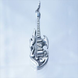 ステンレス ◆商品のコメント◆ トライバル模様とファイヤーパターンをハーフ&ハーフデザインにしたギターモチーフ・ペンダントトップ 胸元に飾