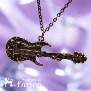 エレキギターのトップがクールなチェーンネックレス ギター部分には地金にあわせたカラーのラインストーンをセット キラリと光るロックなネックレスです ※この商品はシルバー製品ではありません ■素材:合金 ...