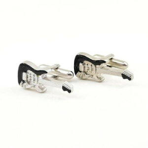 2個セット(両手用)での販売となります。 ブラックとホワイトのカラーがクールなエレキギターカフスボタンです。ギターが好きな方や、音楽関係者の方におススメ!プレゼントにも喜ばれそうですね。サイズ:32mm×10mm