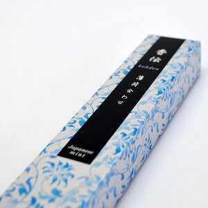 香からくさ文様の小箱に納められたお香「香伝(こうでん)」シリーズの中の、薄荷合わせです。 薄荷(はっか)は、皆さんよくご存知の事と思います。 その薄荷を中心に、天然龍脳とナツメグを合わせて、すっきりとした清涼感となめら