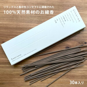 商品について 坐禅・瞑想に最適な、リラックスと集中をコンセプトに調香された100%天然素材のお線香です。 1本の燃焼時間※が約30分、中央で折ると約15分と大まかな時間を計ることができます。 1日1回...