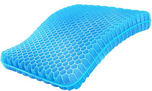 【ジェル素材・衝撃吸収】クッション性に富んだゲル素材を使用。ジェルクッション特有のクッション性で座るとき体の重さと座面からの圧迫を吸収。おしりにやさしい。 【ハニカム構造・通気性マックス】ハニカムクッションならではの通