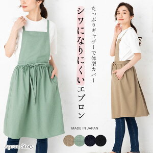 安心の日本製!ノンアイロンでお手入れ簡単!たっぷりギャザーのふんわりクロスエプロン。女性らしい華奢な印象の細めな腰紐と肩紐がおしゃれな雰囲気に。洗濯後もしわになりにくいノンアイロン生地を採用しています...