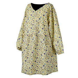 ワンマイルウェアがコンセプトのエプロンシリーズ。・首周りはVネックですっきりと、ウエストにはふんわりギャザーが入ったスタイル。・フラワーモチーフとリーフモチーフをバランス良く散りばめた優しい印象のデザインです...