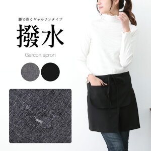 ノーアイロンでOK!撥水加工のギャルソンエプロン かわいい おしゃれ エプロン無地 前掛け 素材ポリエステル100%。カラーブラック。生地の厚さ普通。サイズウエスト64〜77cm。