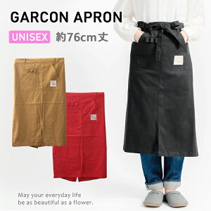●●商品説明・詳細●● 72cc丈のプレーンなカフェエプロンの前中心にスリットが入りさらに機能的になりました。 右に1ヶポケツトは、マチ入りで伝票やペンなども入りやすい形です。 素材はポリエステル混のツイルで丈夫です。巻いた後