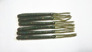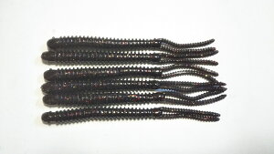 ツインテールのストレートワームです。 2本のテールそれぞれにスリットが刻まれており、水の抵抗を受けることでゆらゆらとゆらめきます。 ノーシンカーだとそうでもないですが、軽めのシンカーを打つと、フォール中にもテールのゆらめ