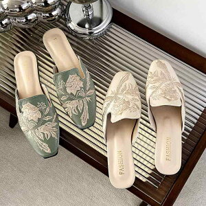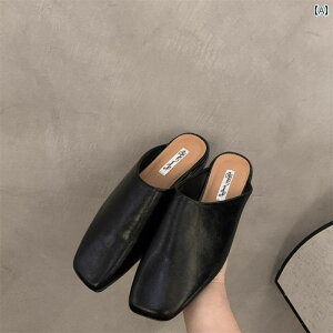 香港の 黒の ファッション 包 頭 ハーフ スリッパ、 女性用、 2025年 夏の 新作、 レトロな スクエア ヘッドの 怠 惰な サンダル、 ミュールブランド: ブランドなし/登録商標なしスタイル: 韓国語スタイル: 包頭ヒールの高...