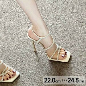 ヌーディーな細線ストラップで足元に抜け感をプラス。程よい高さのヒールとクロスのラインが足元をより綺麗に見せてくれます。スクエアトゥでモードな雰囲気に仕上げました。◆ヘルシーな肌見せが叶う!大人の細線サンダル・太めの4cm
