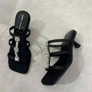 ・カラー展開: ピンク、ブラック、ベージュ・サイズ展開: 34、35、36、37、38、39、40・アッパー素材: サテン・タイプ: ワンストラップ・スタイル: 欧米風・つま先形状: スクエアトゥ・ソール素材: ゴム・裏地素材: マイ...