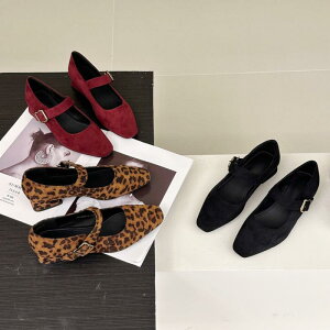 パンプス レディース ヒョウ柄 フラット ローヒール スクエアトゥ 履きやすい 歩きやすい 痛くなりにくい 婦人靴 超繊維 柔らかい 浅口 春夏 秋冬