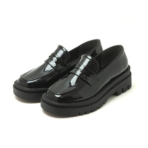 [マスチェッタ] ローファー レディース パール飾り カジュアルシューズ マニッシュ コンフォート 幅広設計 軽量 厚底 ブラックエナメル 24.0cm
