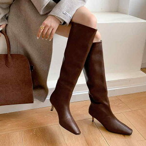 ・カテゴリ: 騎士ブーツ・対象年齢層: 成人・アッパー素材: 牛革・ソール素材: ゴム底・性別: レディース・スタイル: 欧米風・つま先形状: スクエアトゥ・ヒール形状: スティレットヒール・ヒールの高さ: 高め(6〜8cm)・ブーツ...