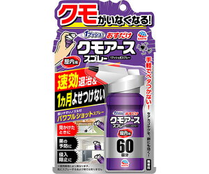 1プッシュするだけで屋内のクモを速効退治します。クモが侵入しそうな場所にスプレーしておくだけで、約1ヵ月よせつけません。(使用環境により異なります。)※HD函仕様です。