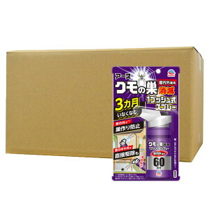 【商品説明】クモが巣を張りそうな場所や侵入しそうな場所にプッシュしておくだけで、約3ヵ月間(※使用環境により異なります)クモをよせつけません。 屋内外でクモを見かけた時も直接駆除できます。 アース独自のパワフルショットスプレーで高い所...