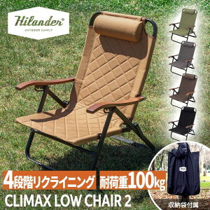 Hilander(ハイランダー) クライマックスローチェア2 収納袋付 アウトドアチェア リクライニング ST(スチール)