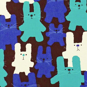 青、クリーム、浅葱のウサギ 焦げ茶/オックスフォード CK-3885 コミカルにデフォルメされたウサギ柄。コントラストがハッキリした色使いが可愛いです。素材は少し厚みがあるオックスフォード。バッグ作りやクッションカバーに最適です...