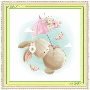 ステッチ数:173x173 【A】【人参-ウサギ】 刺繍色数:34色 【B】【傘-ウサギ-1】 刺繍色数:29色 【C】【傘-ウサギ-2】 刺繍色数:29色 【D】【蝶-ウサギ】 刺繍色数:23色 刺繍布:綿、11カウント(図案...