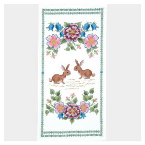 刺し子糸・細で刺せる一目刺しの花ふきん第2弾! ウサギのかわいいモチーフのキットが登場です。刺し進むうちにかわいいモチーフが現れて、できあがる達成感とともに気持ちもホッと。一針ごとに気持ちがほんわか和むような花ふきん作
