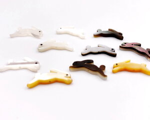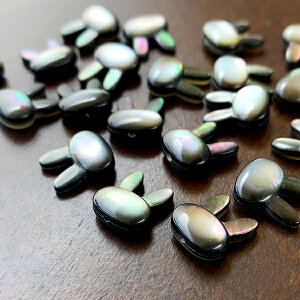 シックでありながら愛らしいうさぎモチーフ。シェルの光沢や模様が角度によって美しく輝きます。縦穴のタイプになり、ペンダントやチャームとしてもぴったり!ブラックシェルの特徴で、反面がホワイトや両面ブラックなど、1つずつ違い