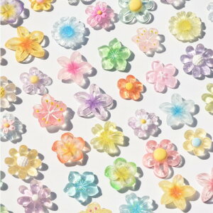 デコパーツ フラワー 花 クマ ネコ ウサギ 透明パーツ 50個セット アクセサリー ミックス 樹脂製 ヘアピンパーツ 福袋 飾り物 携帯ケース装飾 DIY 飾り物 子供 デコレーションパーツ 手芸 ハンドメイド用...