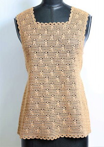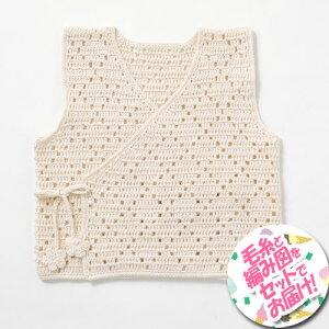 ンクロッシェで編むベストのニットキット(編みものキット) 毛糸と無料編み図付きの着分セットです 扇模様を編みつないでいくかぎ針編みのベストです ■カラー:151番(掲載作品) ■使用毛糸: