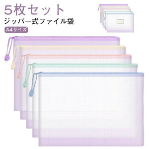 【5枚セット】【A4サイズ】【ジッパー式ファイル袋】小物も書類も一度に収納。机の中に、営業カバンに出張に便利。防水、防汚 曲げても跡を残さず柔らかい仕様持ち手付き、持ち運びにも便利。吊り下げ置きも可能...