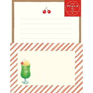 かわいいレターセット 水彩風のタッチで描かれたクリームソーダのデザインが涼し気なレターセットです。 封筒は中に入れた便箋の柄がすこし透ける素材で、ちょっぴりおしゃれです。 ■便箋6枚、封筒3枚 ■便箋サイズ:188×128mm...