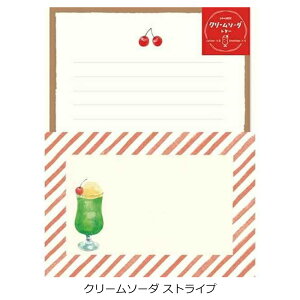 クリームソーダの形やコースターの形にそのままくりぬいたミニレターセット。 レトロな柄のグラスに入ったカラフルなソーダがとってもおいしそう! え?!これってお手紙なの?!ってびっくりすること間違いなし!...