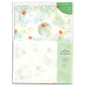 商品詳細 水彩タッチのカワイイクリームソーダのレターセットです。 かわいいながらもおしゃれなデザインなので使いやすく、大き目サイズなのでたっぷり手紙を書くことができます。 封筒がL判サイズなので、写真などを一緒に入れて送る