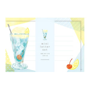 ーセットです。正方形型のミニレターで便箋を折らずに封筒に入れられます。喫茶レトロなグリーンのクリームソーダ、星空のような彩りの