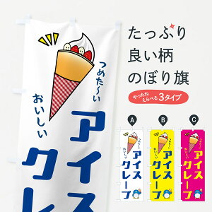 商品名:「アイスクレープ」 寸法:幅600mm×高さ1800mm メーカー:のぼり屋工房 型式:21105 お届け数(合計):1 材質・素材:ポリエステル 商品コード:cv2-21105 JAN:453968121