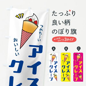 商品名:「アイスクレープ」 寸法:幅450mm×高さ1800mm メーカー:のぼり屋工房 型式:22281 お届け数(合計):1 材質・素材:ポリエステル 商品コード:cv2-22281 JAN:453968122