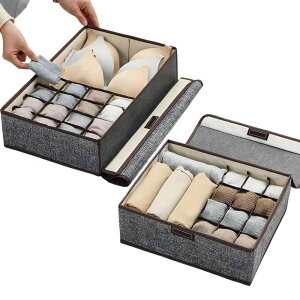 AmoreTempo 【タンスの整理に】下着収納ケース 2点セット 衣類収納 立体ブラジャー収納ボックス 折り畳み クローゼット収納 仕切りケース ネクタイ 下着/ショーツ/靴下/ネクタイ収納 大容多用途仕切り収納ボックス:衣類...